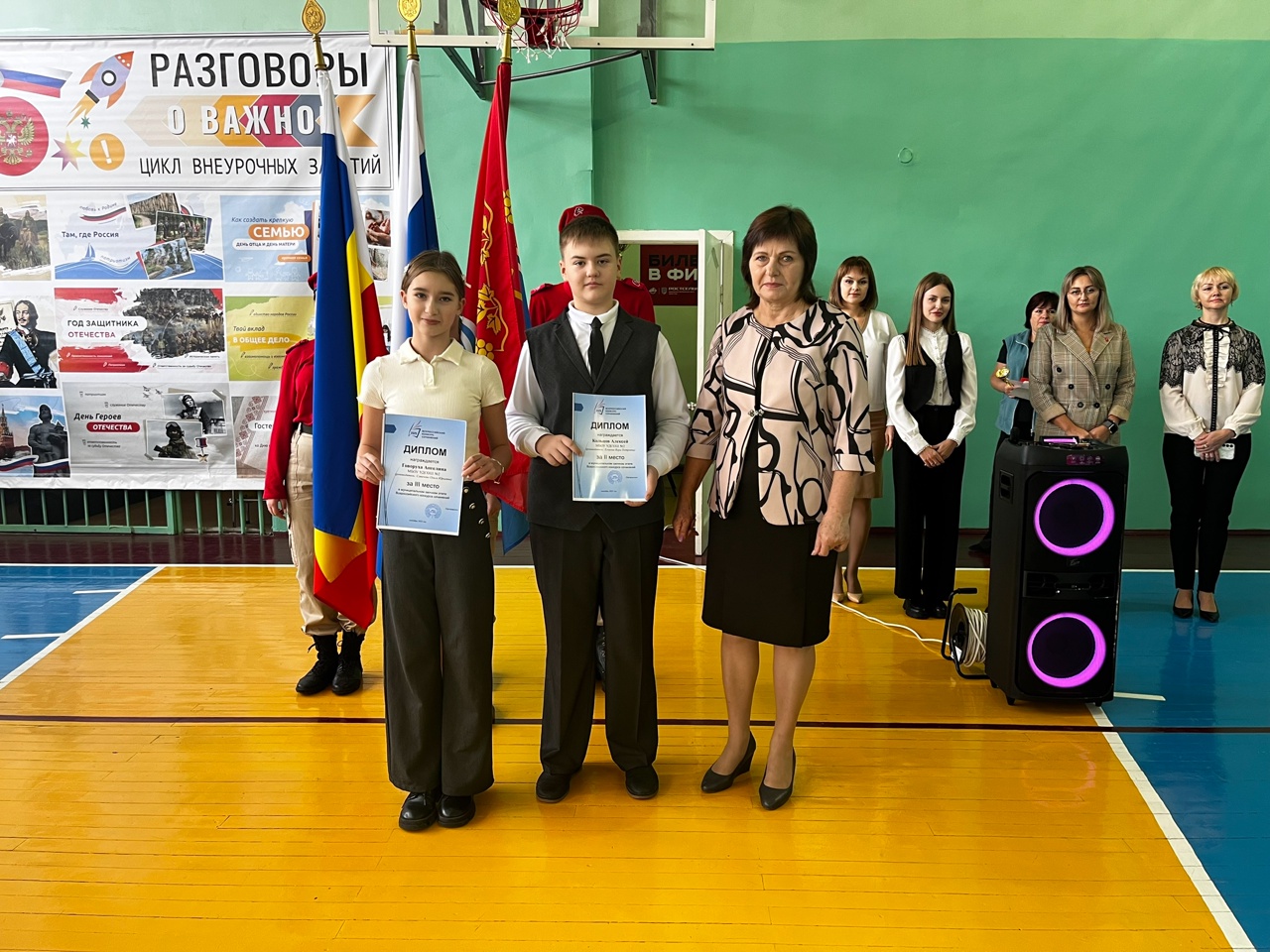 Дипломом был награжден Кольцов Алексей за 2 место в муниципальном заочном этапе Всероссийского конкурса сочинений. В том же конкурсе Говоруха Ангелина заняло 2 место.
